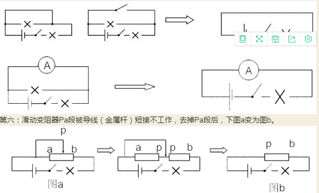 第六:滑動變阻器Pa段被導(dǎo)線(金屬桿)短接不工作,去掉Pa段后,下圖a變?yōu)閳Db。