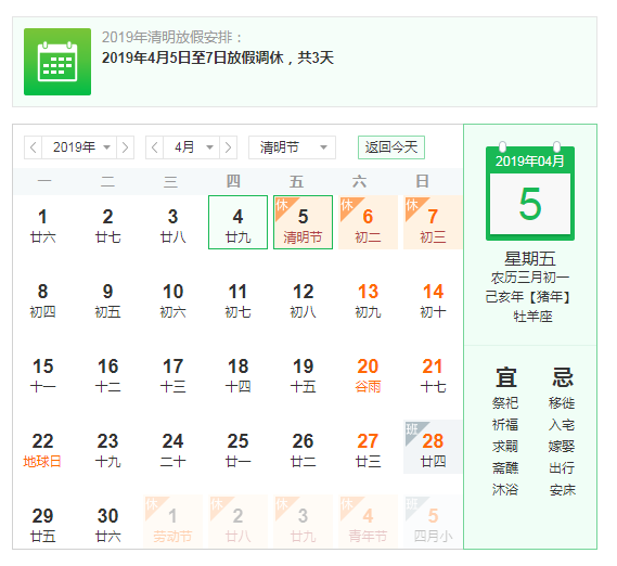 1、4月5日至7日放假調休,共3天。4月8日(星期一)上班。