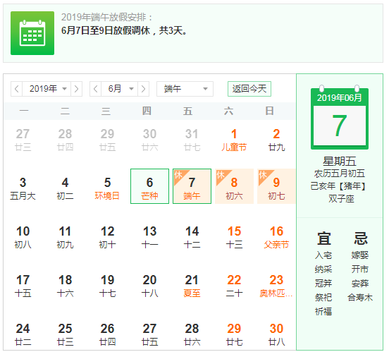 端午節(jié)假期將至,首先向全體員工致以節(jié)日的問候,為了度過歡樂、祥和、平安的節(jié)日,2019年端午節(jié)的放假時(shí)間:2019年6月7日至6月9日放假公休,共3天。6月7日(星期五,農(nóng)歷端午節(jié)當(dāng)日)為國(guó)家法定節(jié)假日,6月8日(星期六)公休,6月9日(星期日)補(bǔ)休。